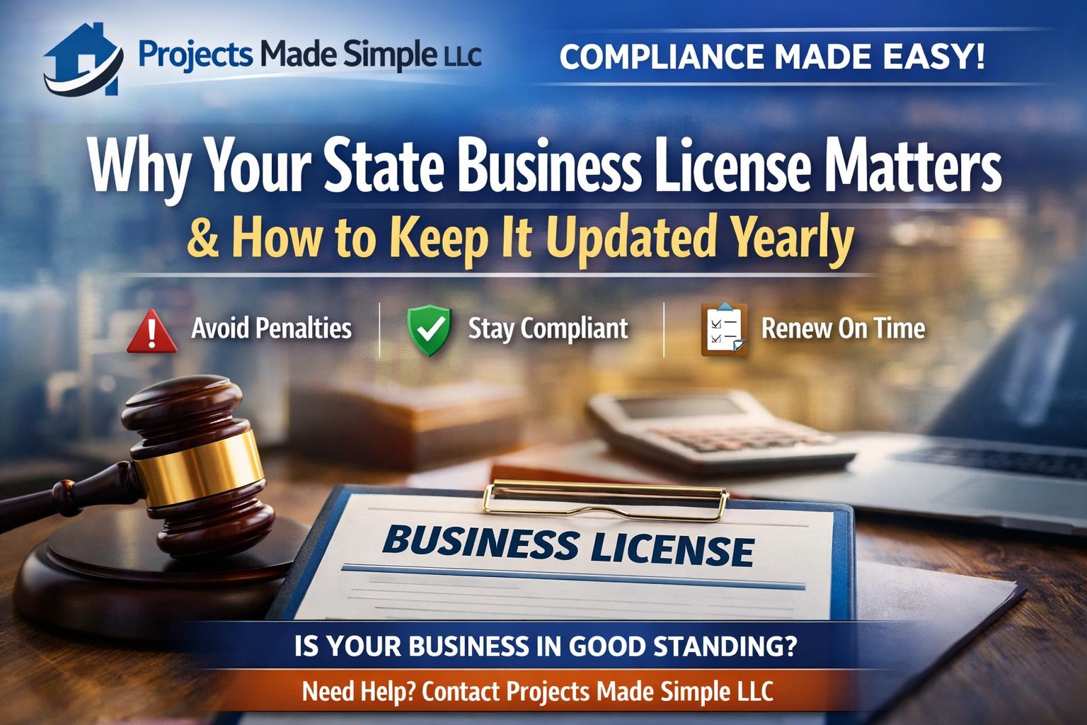At Projects Made Simple LLC, we see it happen all the time—business owners are focused on growth, selling, and serving customers, but one quiet detail falls through the cracks: their state business license and annual compliance filings.